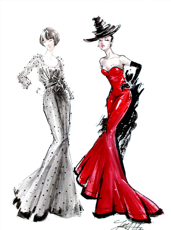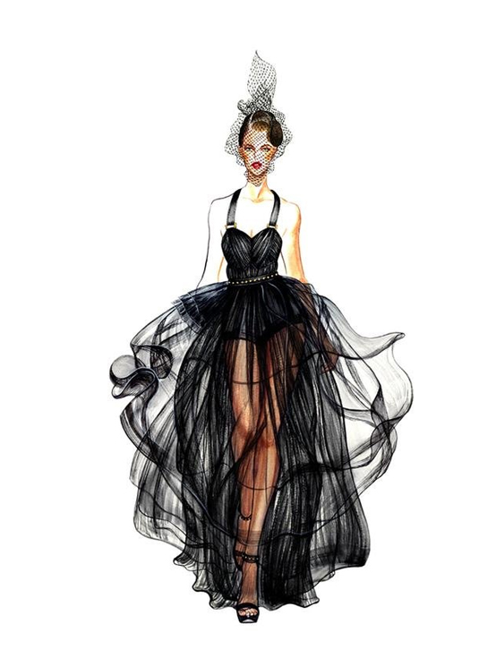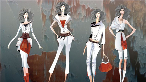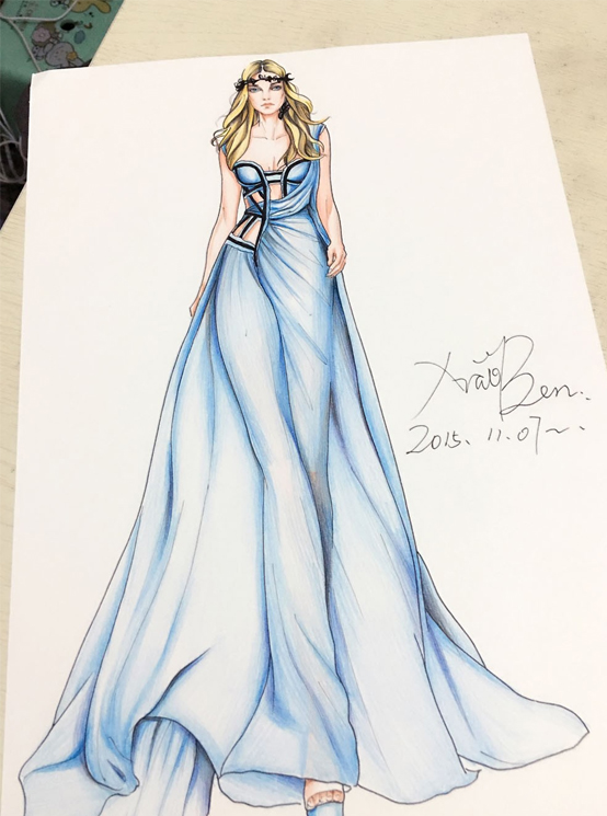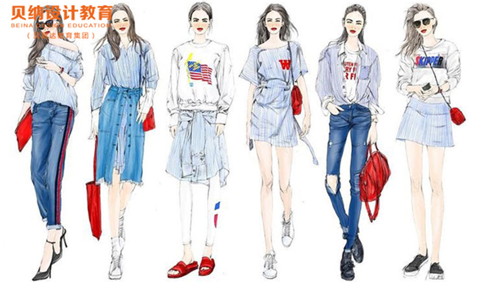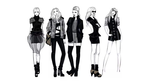 教学重点:不同类型的时装表现,不同时装质感表现,将时装大片绘制成时装画